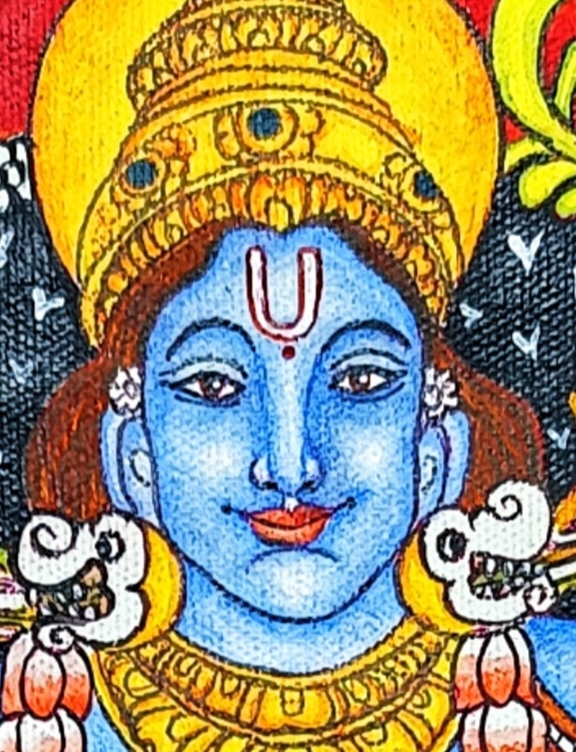 This is handpainted Kerala mural painting of lord Dhanwanthari Moorthy ,it has beautiful bright red & green combination with a spark of white . Kerala mural paintings are the frescos depicting Hindu mythology in Kerala. Ancient temples and palaces in Kerala, India, display an abounding tradition of mural paintings mostly dating back between the 9th to 12th centuries CE when this form of art enjoyed royal patronage .